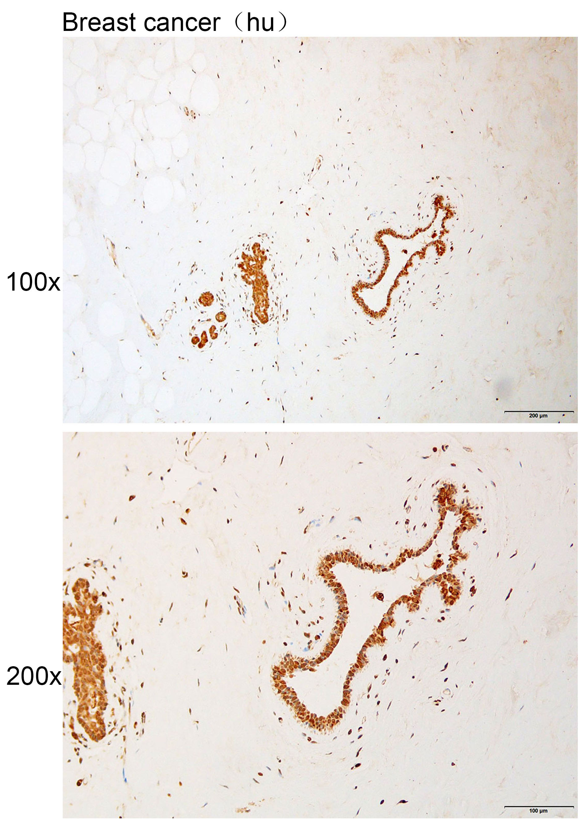 Immunohistochemistry of paraffin-embedded Human breast cancer with TACC1 antibody diluted at 1:100.