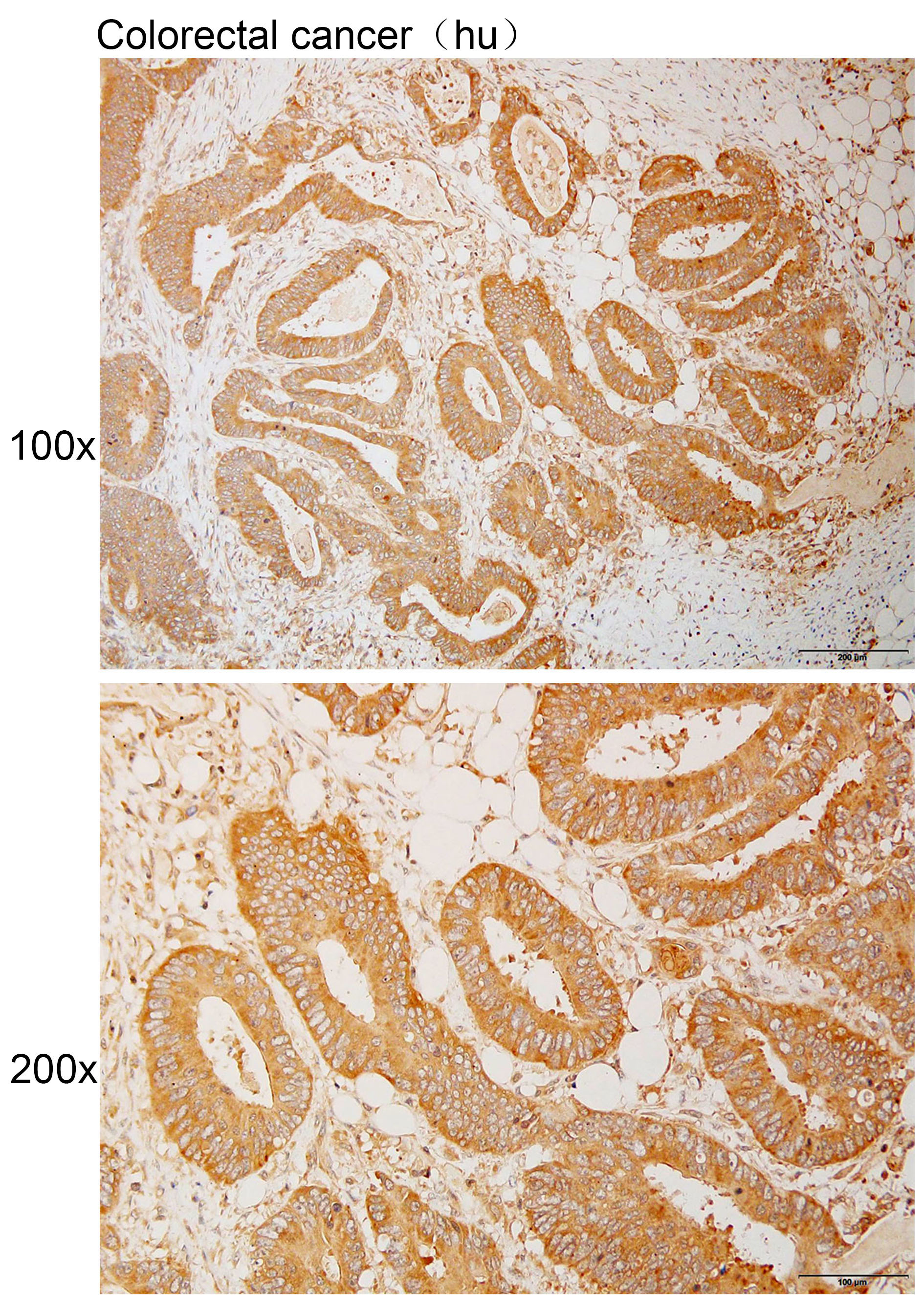 Immunohistochemistry of paraffin-embedded Human colorectal cancer with CDH8 antibody diluted at 1:100.