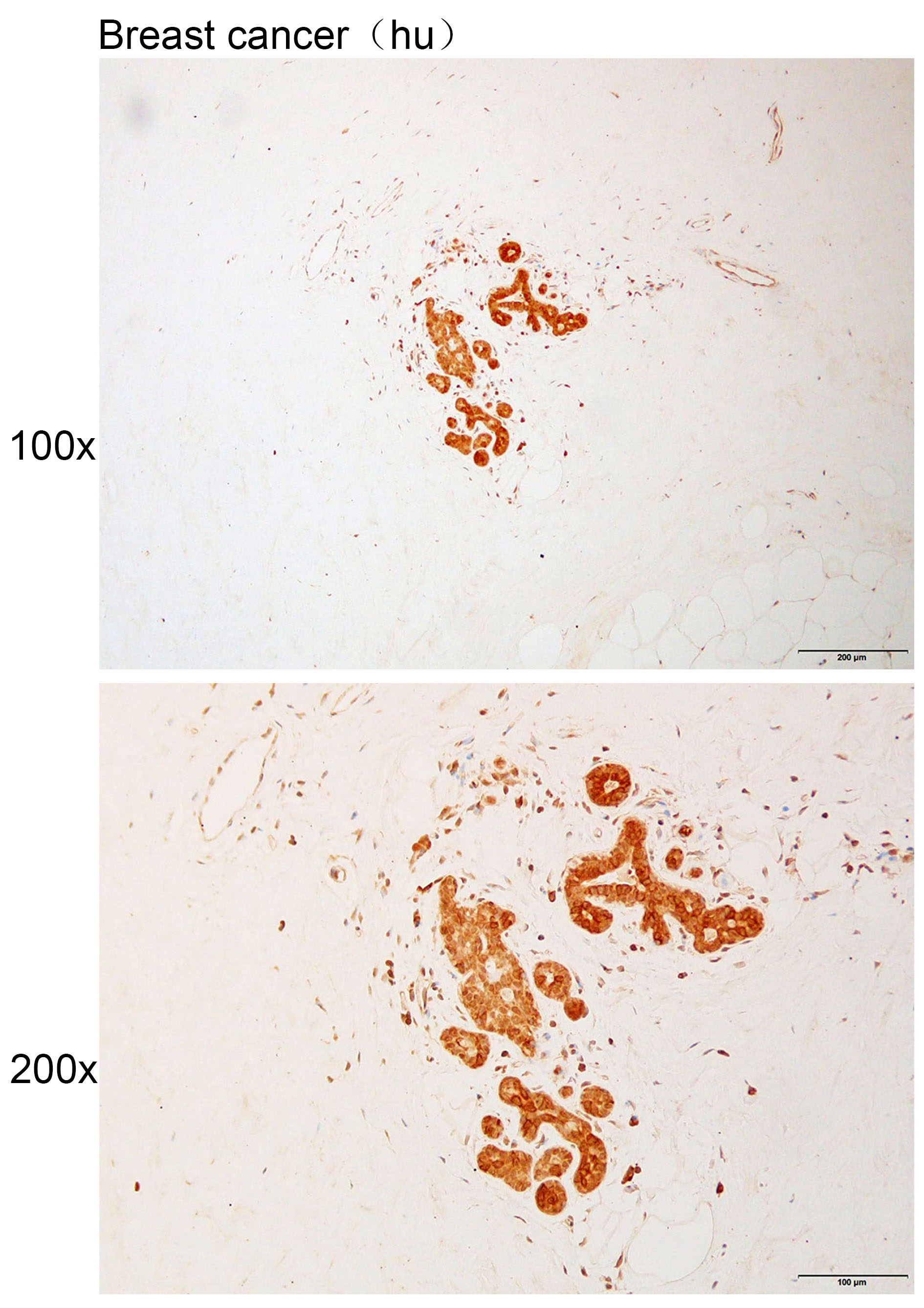Immunohistochemistry of paraffin-embedded Human breast cancer with CDH8 antibody diluted at 1:100.