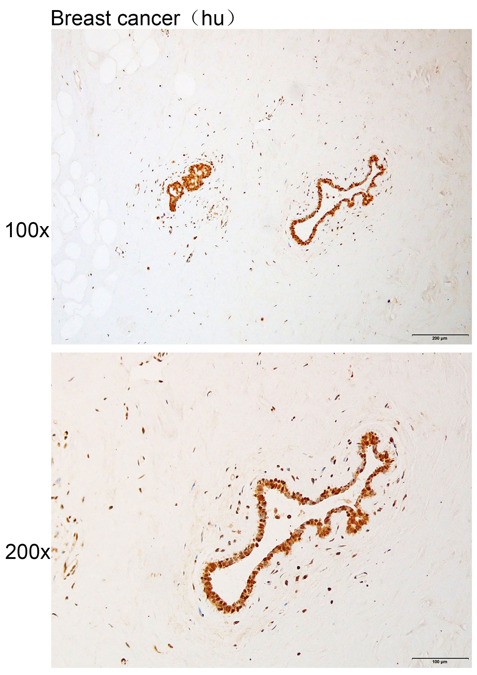 Immunohistochemistry of paraffin-embedded Human breast cancer with GCFC2 antibody diluted at 1:200.