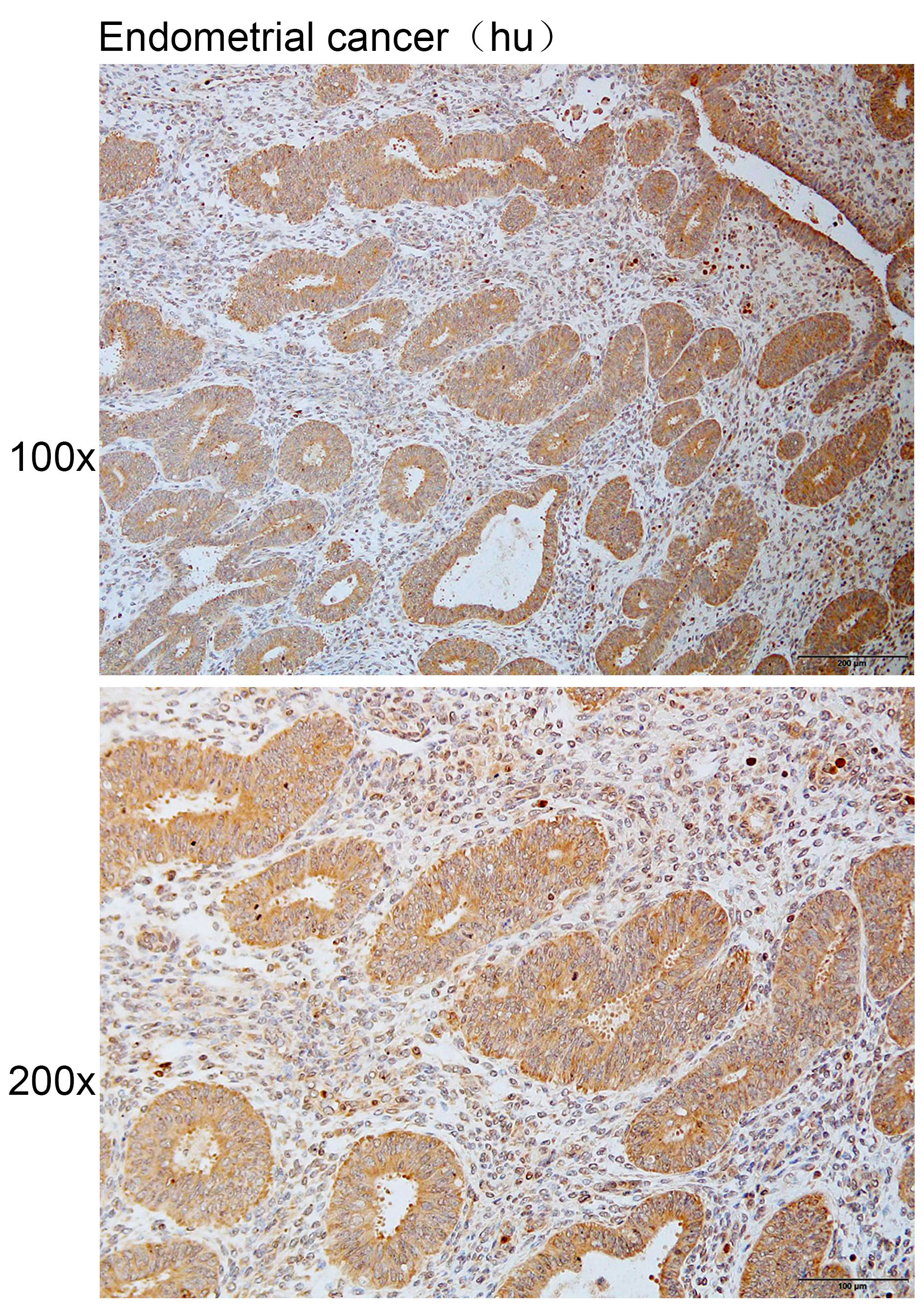 Immunohistochemistry of paraffin-embedded Human endometrial cancer with SCARF2 antibody diluted at 1:100.