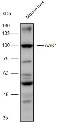 Western blot analysis with AAK1 antibody diluted at 1:2000;Lane:M��