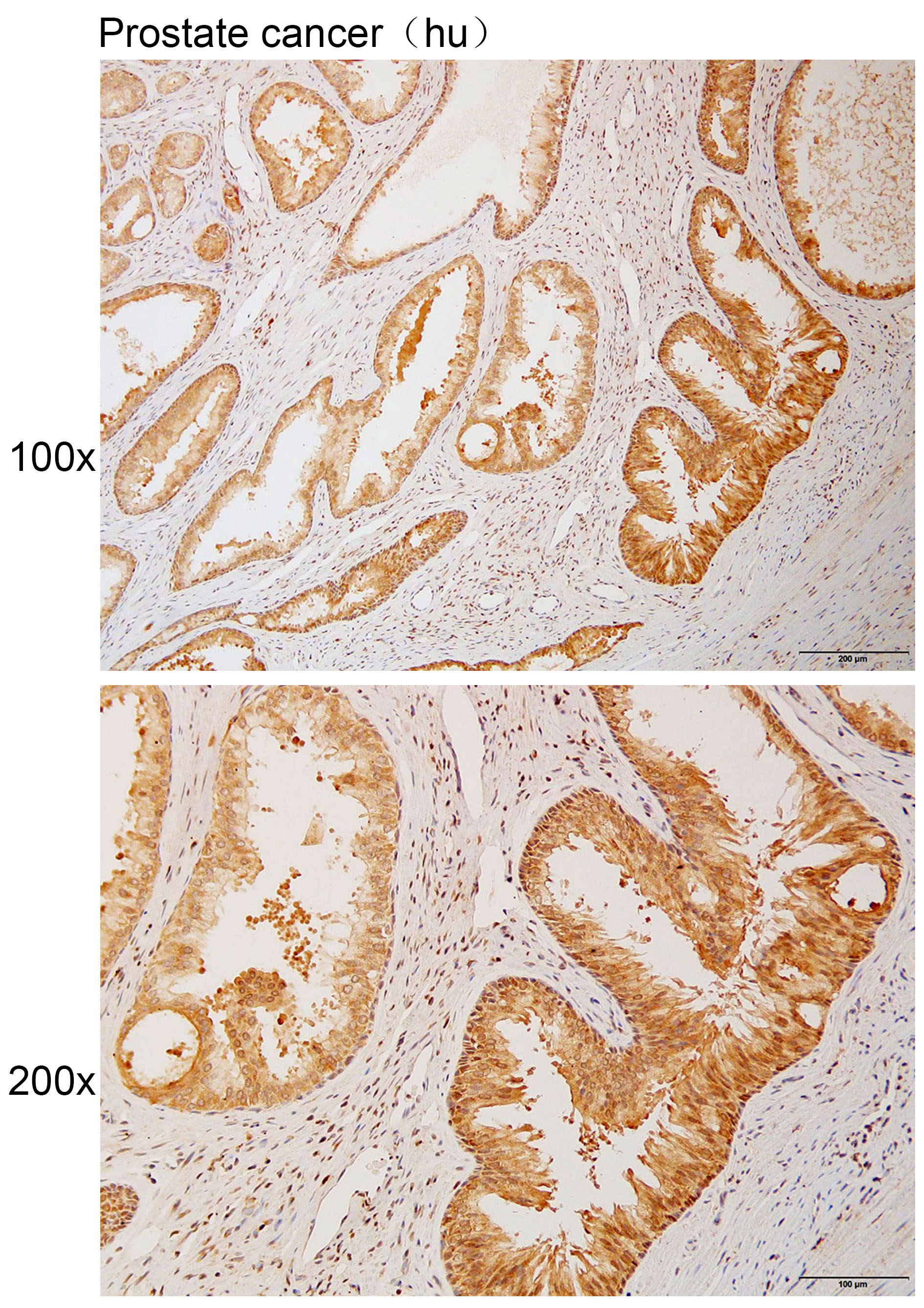 Immunohistochemistry of paraffin-embedded Human prostate cancer with AAK1 antibody diluted at 1:100.