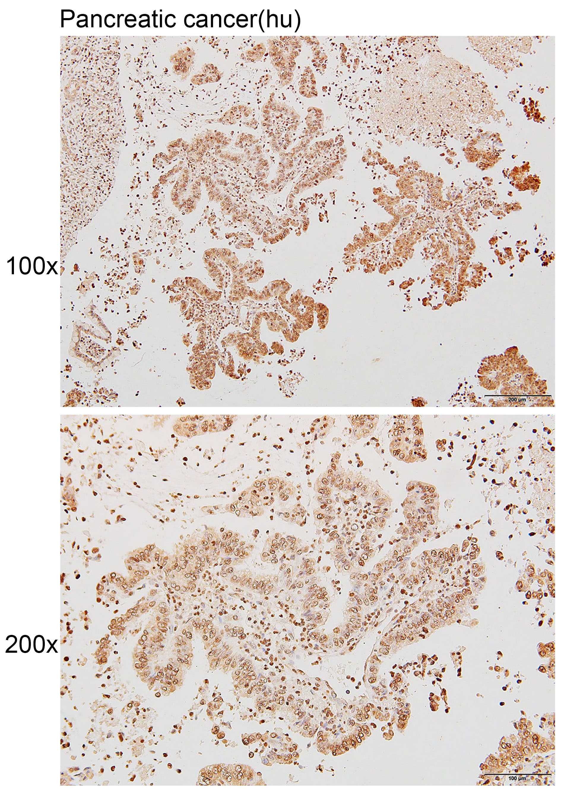 Immunohistochemistry of paraffin-embedded Human pancreatic cancer with RFPL4A/RFPL4AL1 antibody diluted at 1:100.