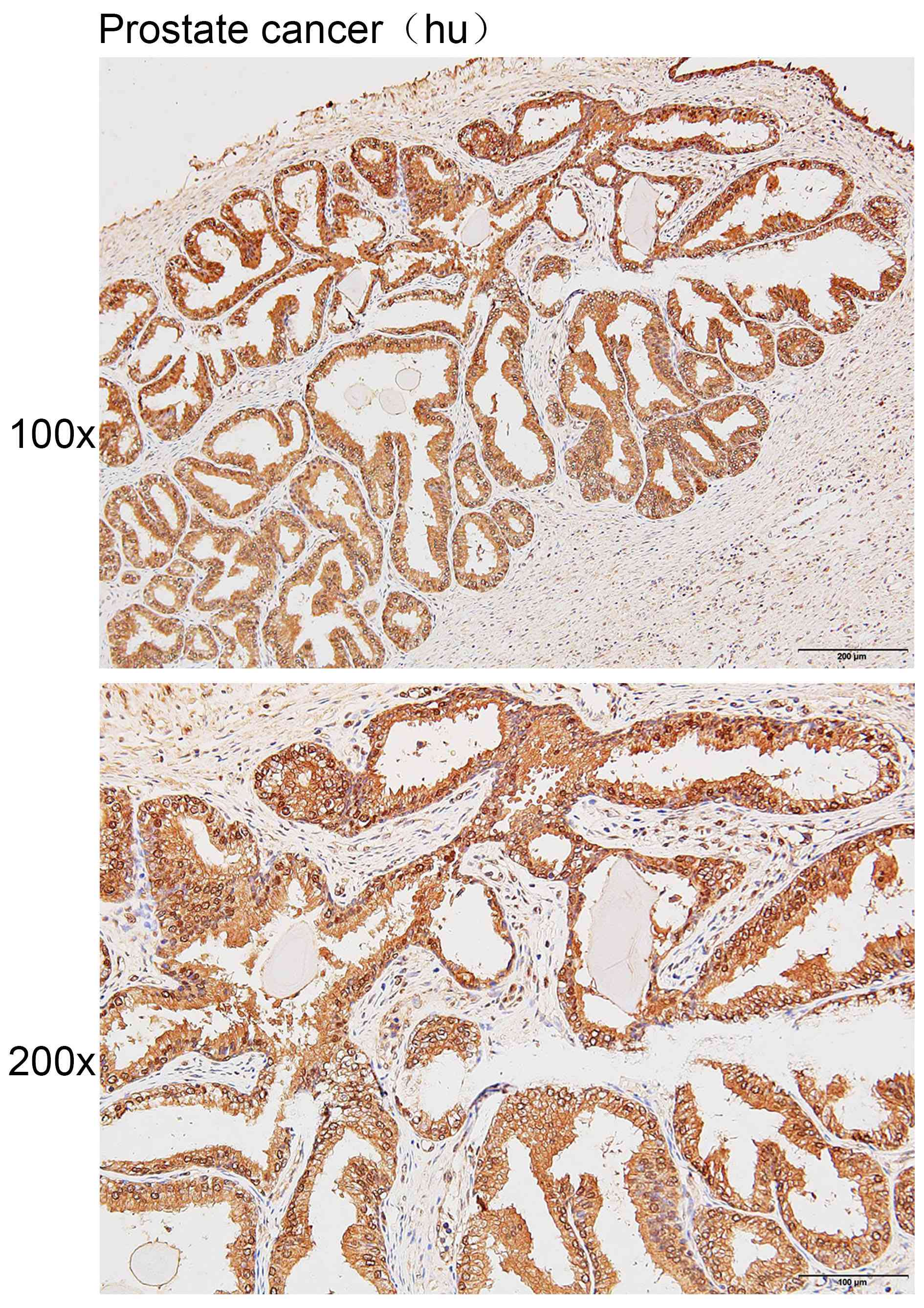 Immunohistochemistry of paraffin-embedded Human prostate cancer with PLG (heavy chain A short form, Cleaved-Val 98) antibody diluted at