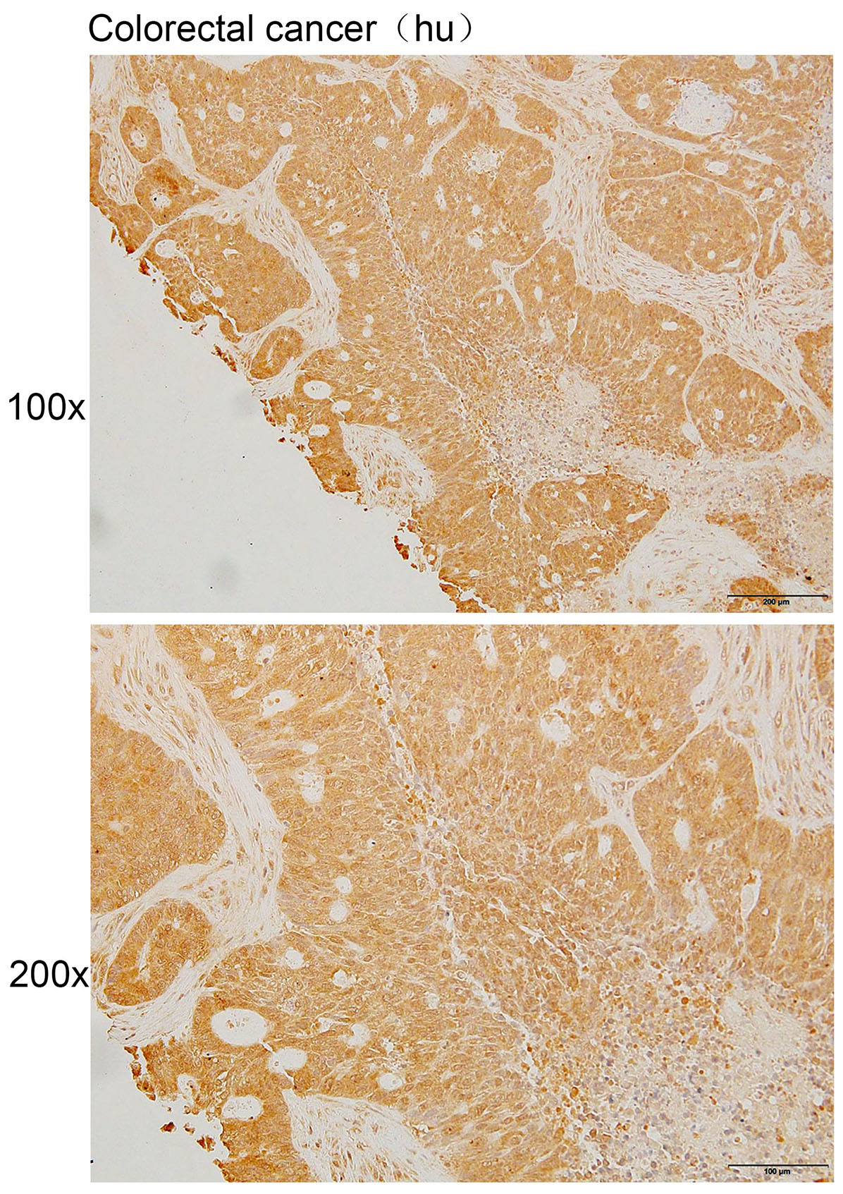 Immunohistochemistry of paraffin-embedded Human colorectal cancer with TMEM156 antibody diluted at 1:200