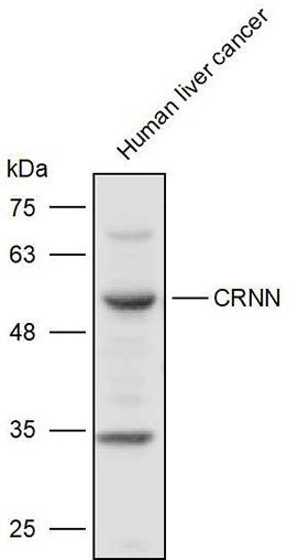 Western blot analysis with CRNN antibody diluted at 1:2000;Lane: Human liver cancer