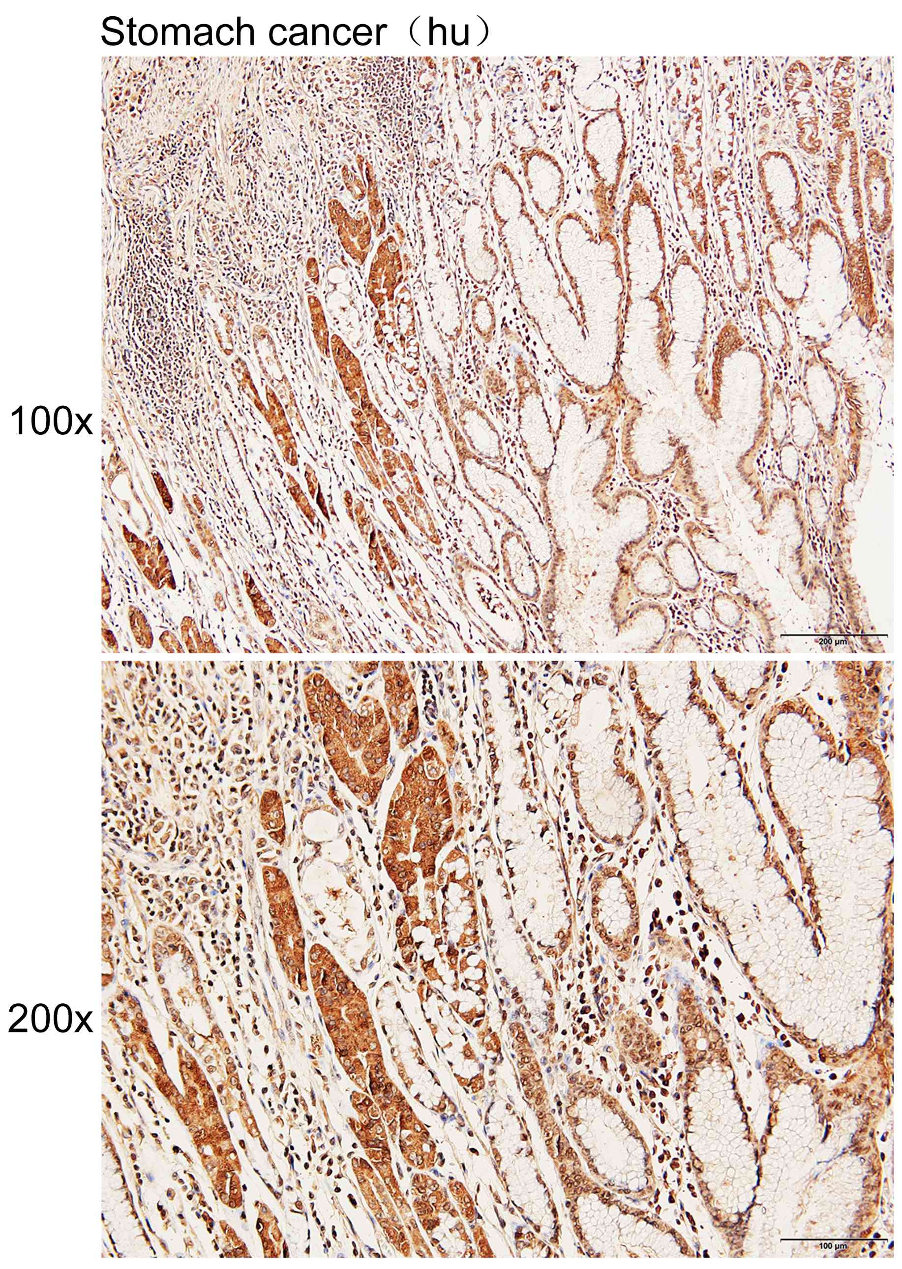 Immunohistochemistry of paraffin-embedded Human stomach cancer with Active CASP3 antibody diluted at 1:200