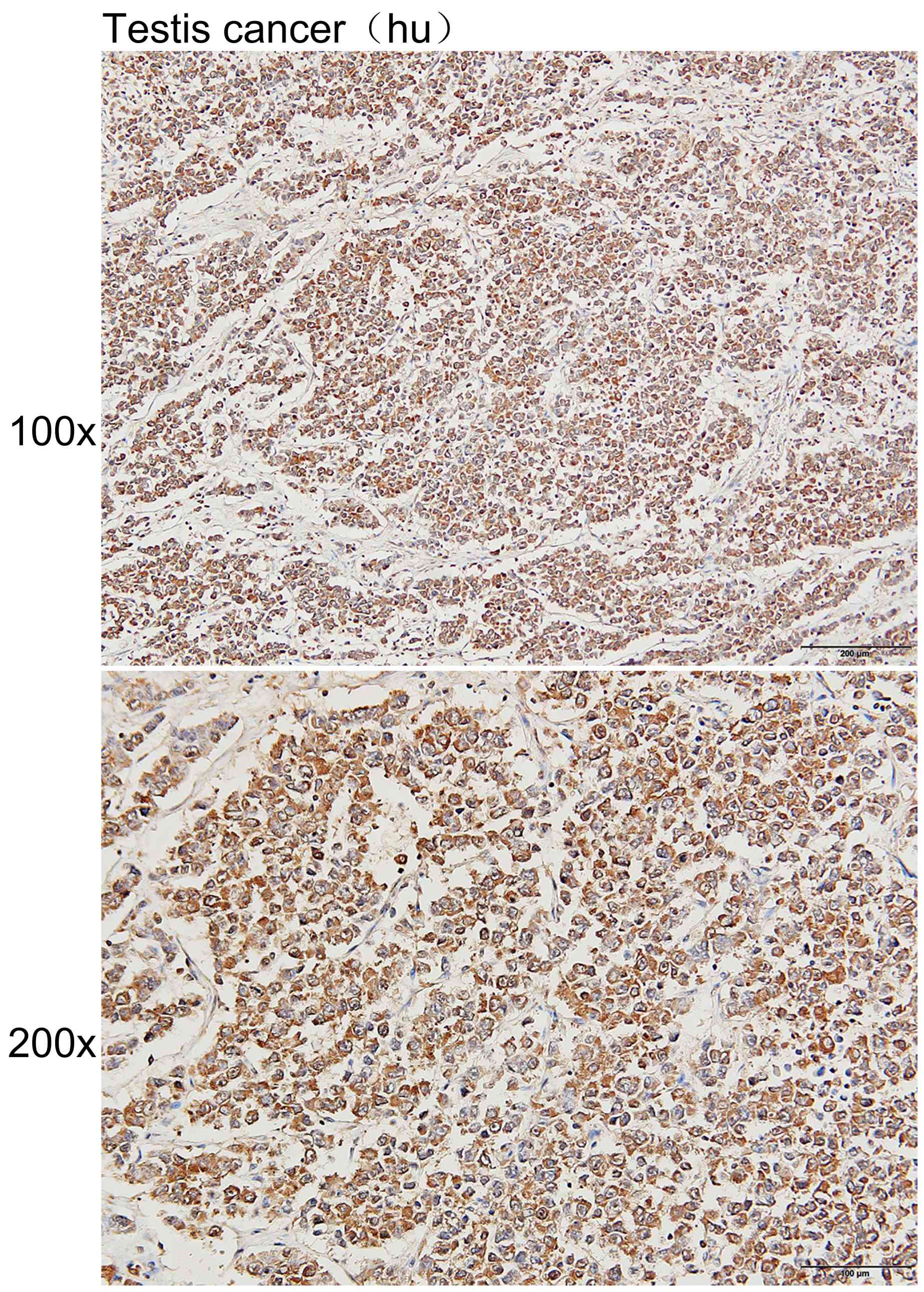 Immunohistochemistry of paraffin-embedded Human testis cancer with Active CASP3 antibody diluted at 1:200