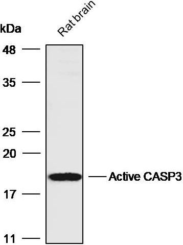 Western blot analysis with Active CASP3 antibody diluted at 1:2000;Lane:Rat brain