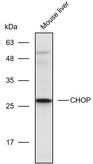 Western blot analysis with CHOP antibody diluted at 1:1000;Lane: Mouse liver