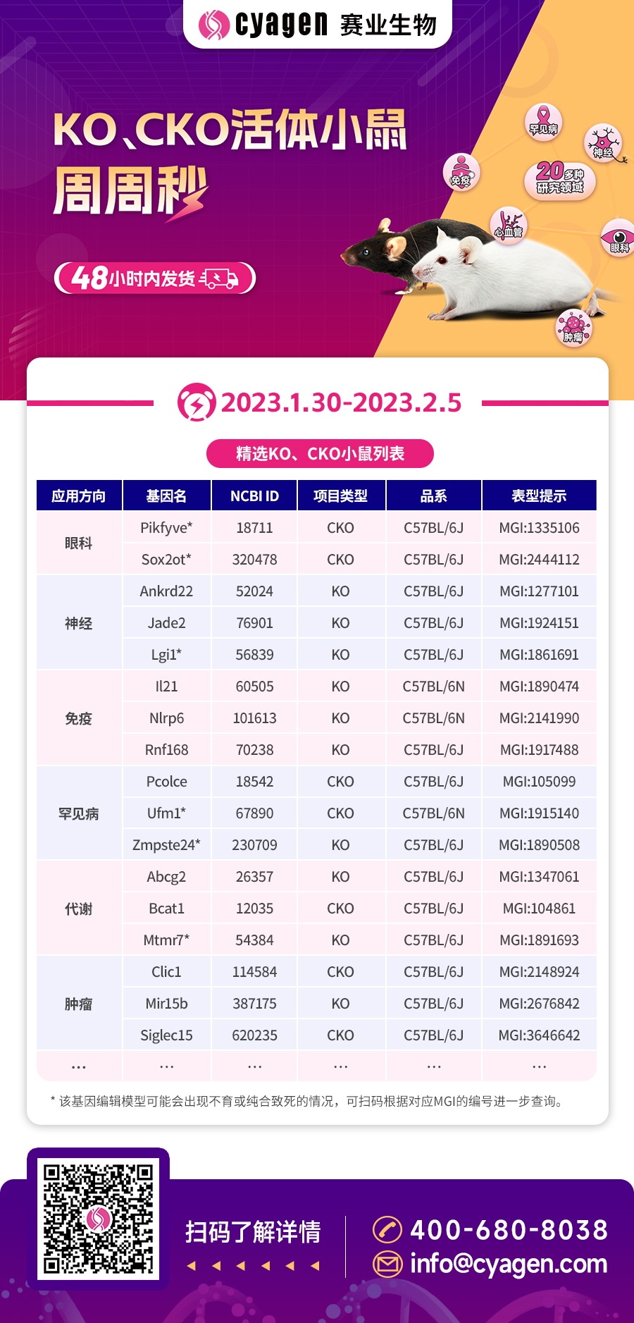 参与基因敲除/条件性敲除活体小鼠的秒杀活动,下单即可获赠百元星礼卡(星巴克)或任一视频平台(腾讯、爱奇艺、优酷、芒果)VIP半年卡。