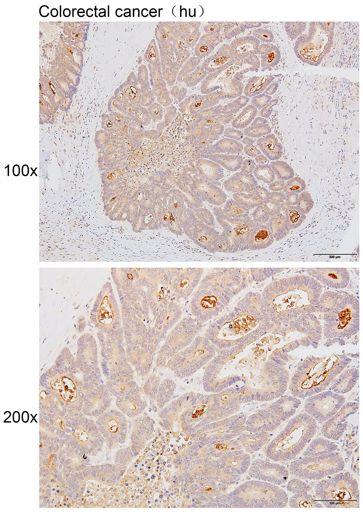 Immunohistochemistry of paraffin-embedded Human colorectal cancer with DCLK2 antibody diluted at 1:100.