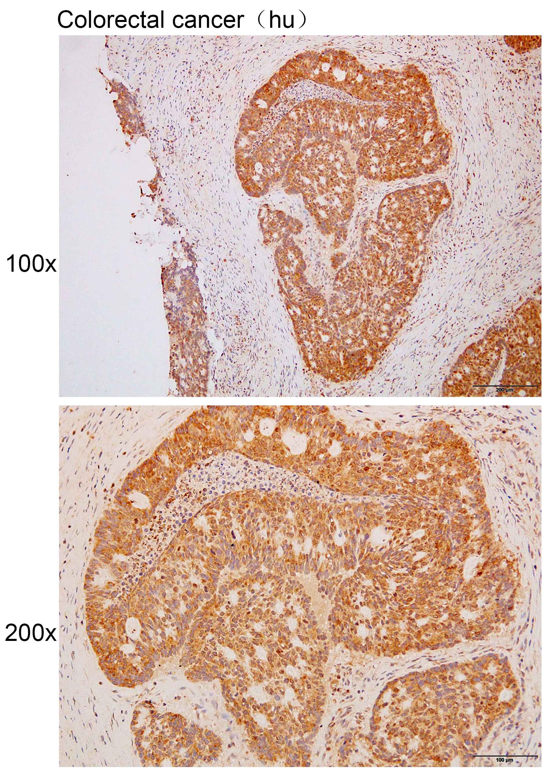 Immunohistochemistry of paraffin-embedded Human colorectal cancer with SMG6 antibody diluted at 1:200.
