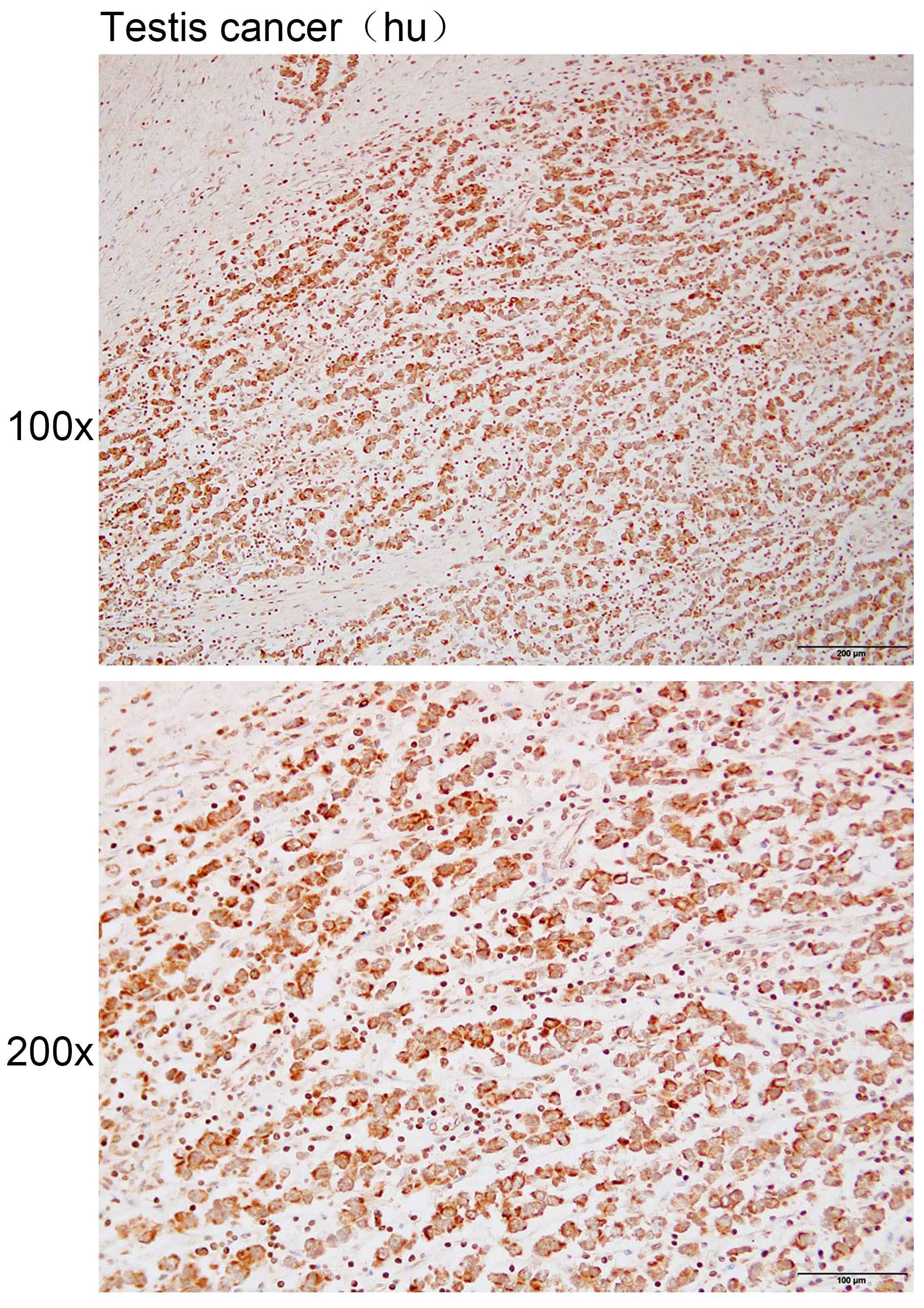 Immunohistochemistry of paraffin-embedded human testis cancer with PPP2R2D antibody diluted at 1:200.