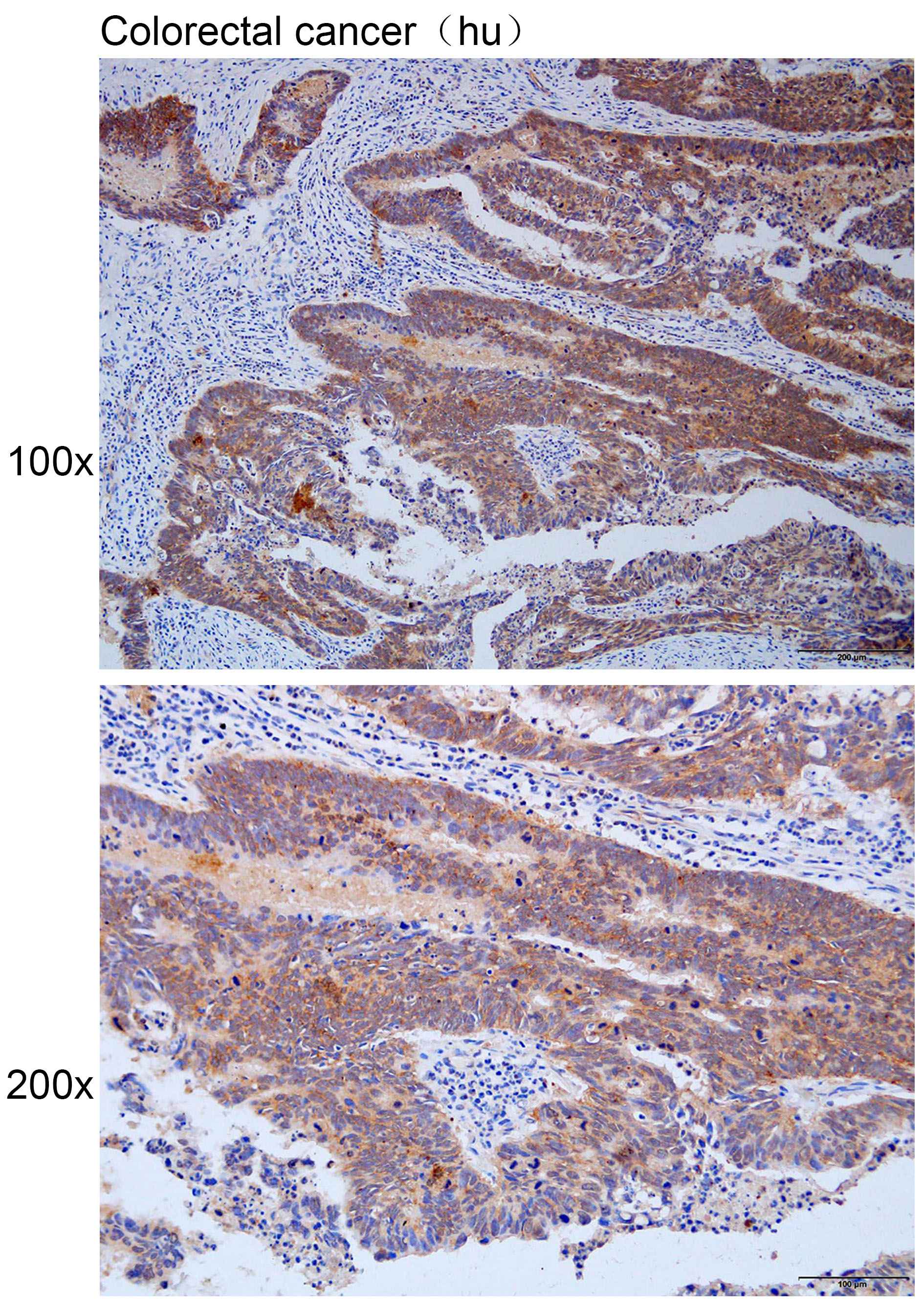 Immunohistochemistry of paraffin-embedded human colorectal cancer with NFAT5 antibody diluted at 1:100.