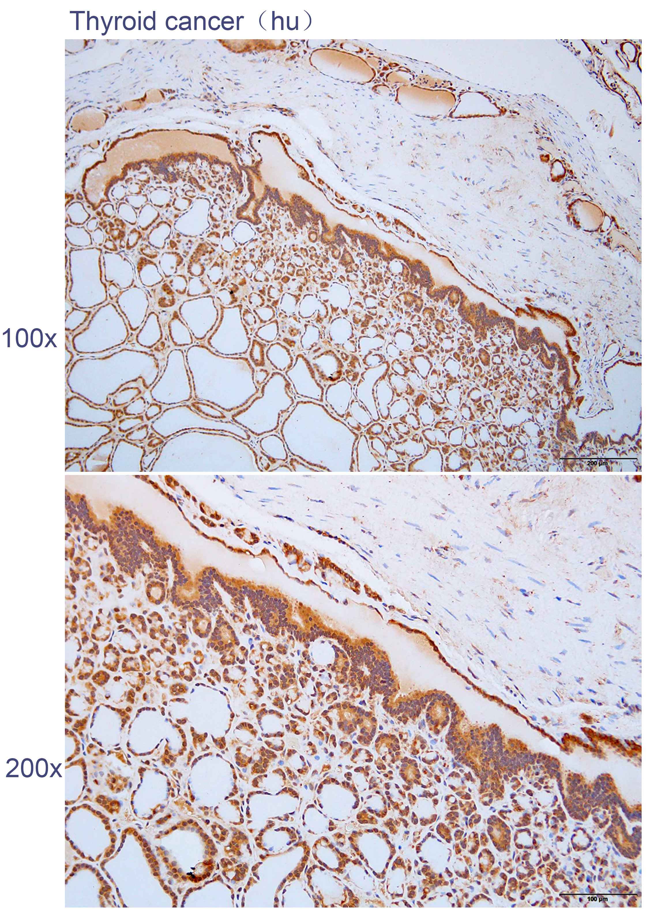 Immunohistochemistry?of?paraffin-embedded human thyroid cancer with USP46 antibody diluted at 1:50.