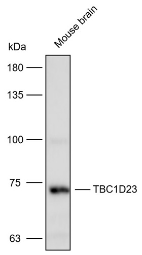 Western blot analysis with TBC1D23 antibody diluted at 1:2000;Lane: Mouse brain