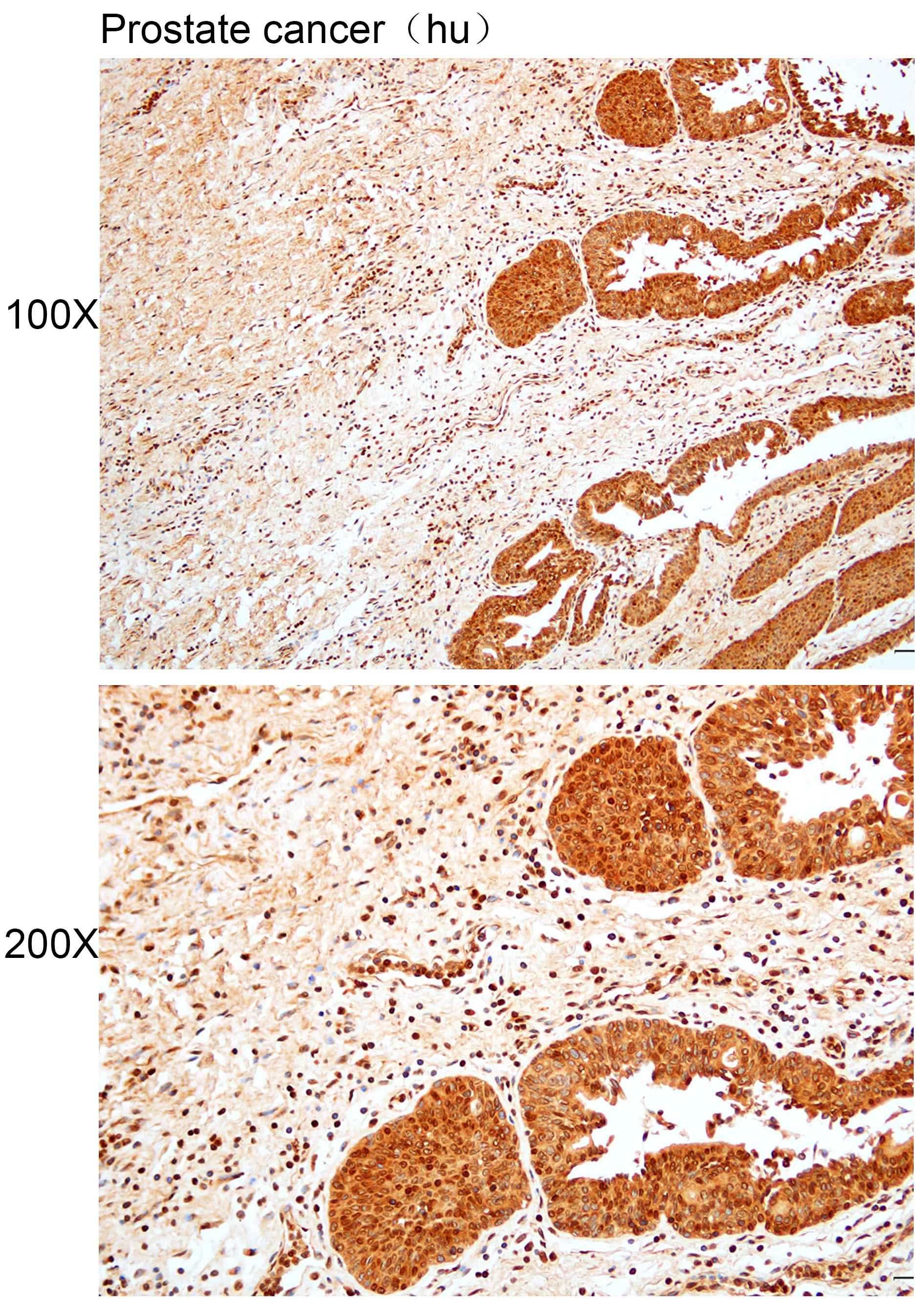 Immunohistochemistry of paraffin-embedded human prostate cancer with SREBF1 antibody diluted at 1:50.