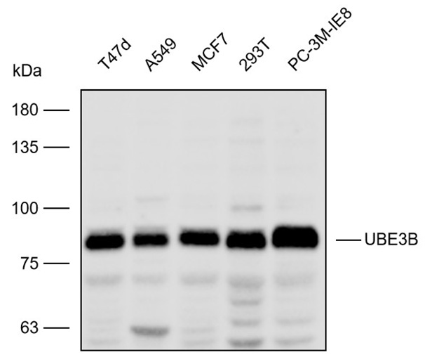 "Western blot analysis with UBE3B antibody diluted at 1:2000;Lane: T47d