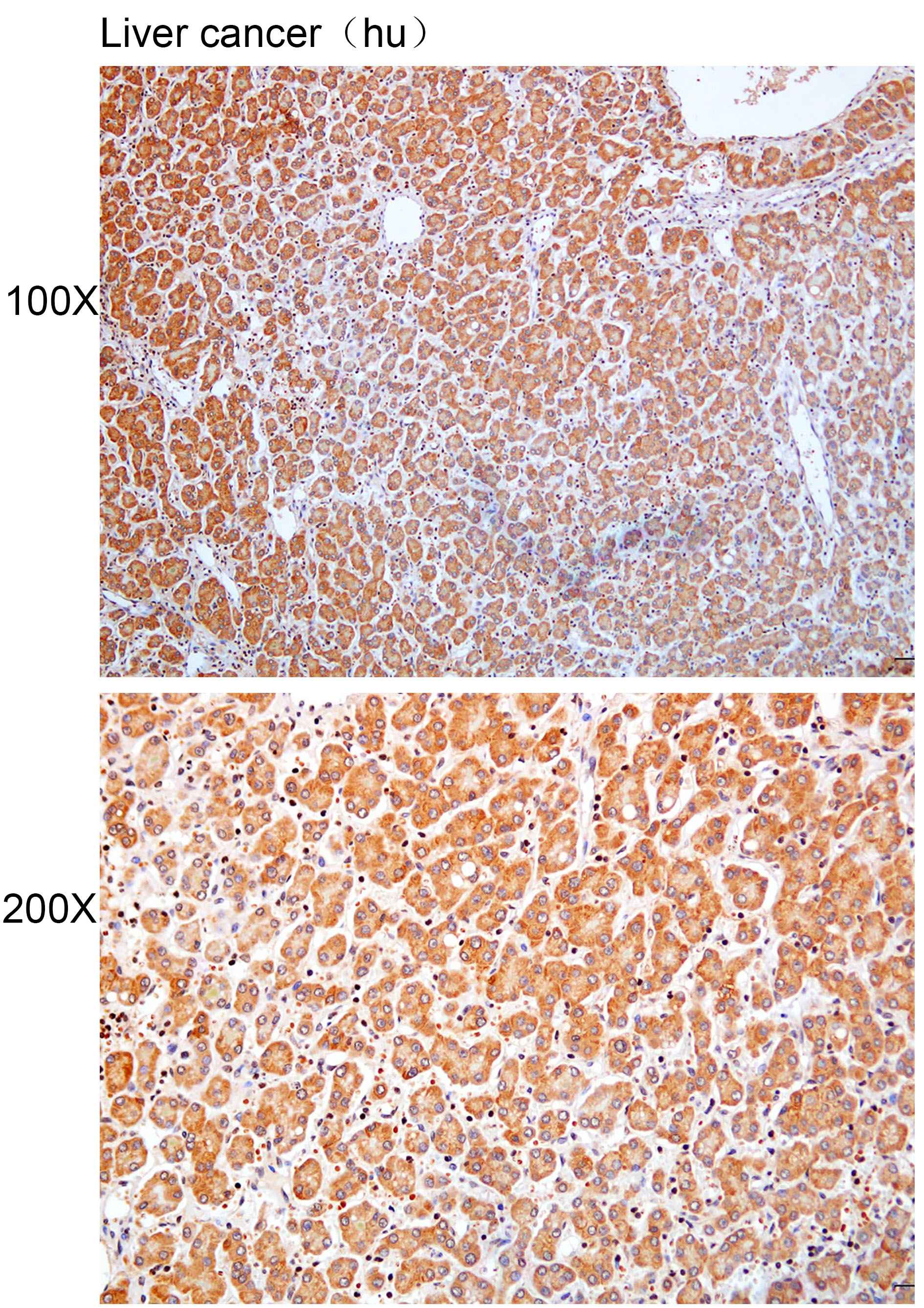 Immunohistochemistry of paraffin-embedded human liver cancer with XCL1/2 antibody diluted at 1:100.
