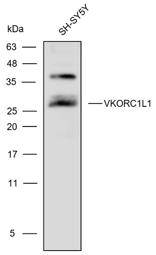 Western blot analysis with VKORC1L1 antibody diluted at 1:2000;Lane: SH-SY5Y.