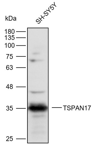 Western blot analysis with TSPAN17 antibody diluted at 1:2000;Lane: SH-SY5Y.