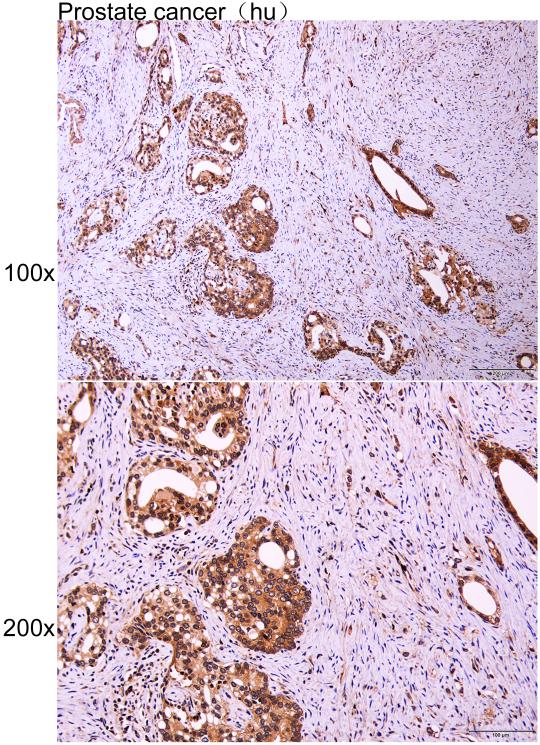 Immunohistochemistry of paraffin-embedded Human prostate cancer with MOB1B antibody diluted at 1:25