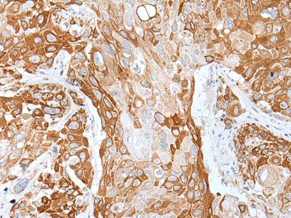 Immunohistochemistry of paraffin-embedded Human esophagus cancerwithDAPK1 antibody diluted at 1:20