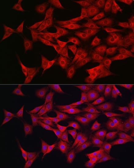 Immunofluorescence analysis of PC-12 cells using AMPKa1/AMPKa2 antibody diluted at 1:100