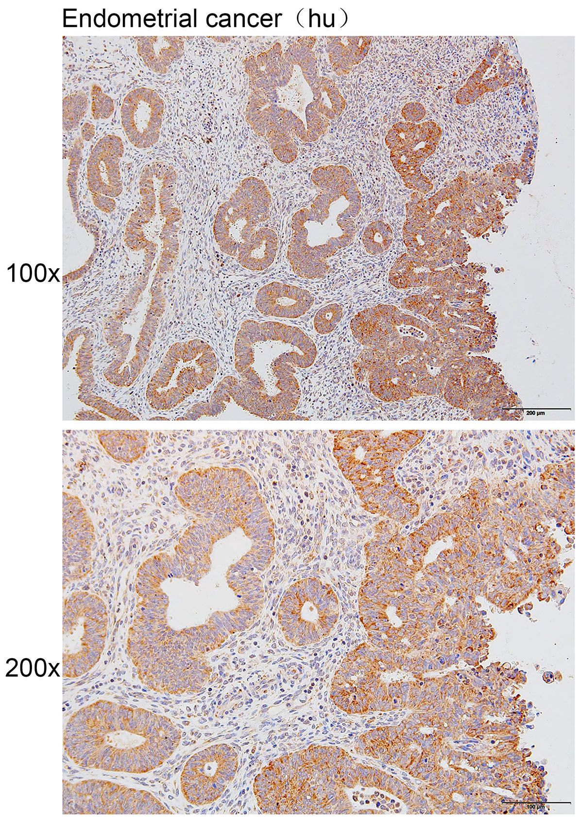 Immunohistochemistry of paraffin-embedded Human endometrial cancer with ADAM17(Cleaved-Arg215) antibody diluted at 1:200.