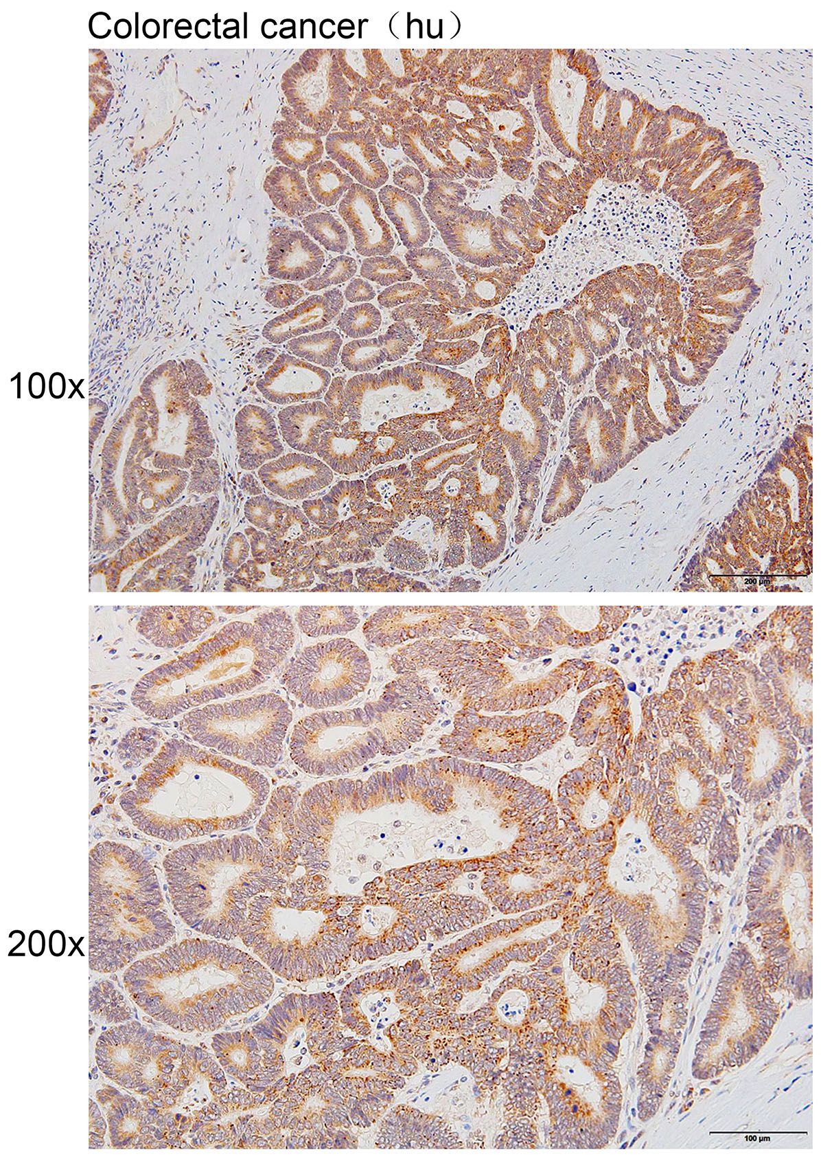 Immunohistochemistry of paraffin-embedded Human colorectal cancer with ADAM17(Cleaved-Arg215) antibody diluted at 1:200.