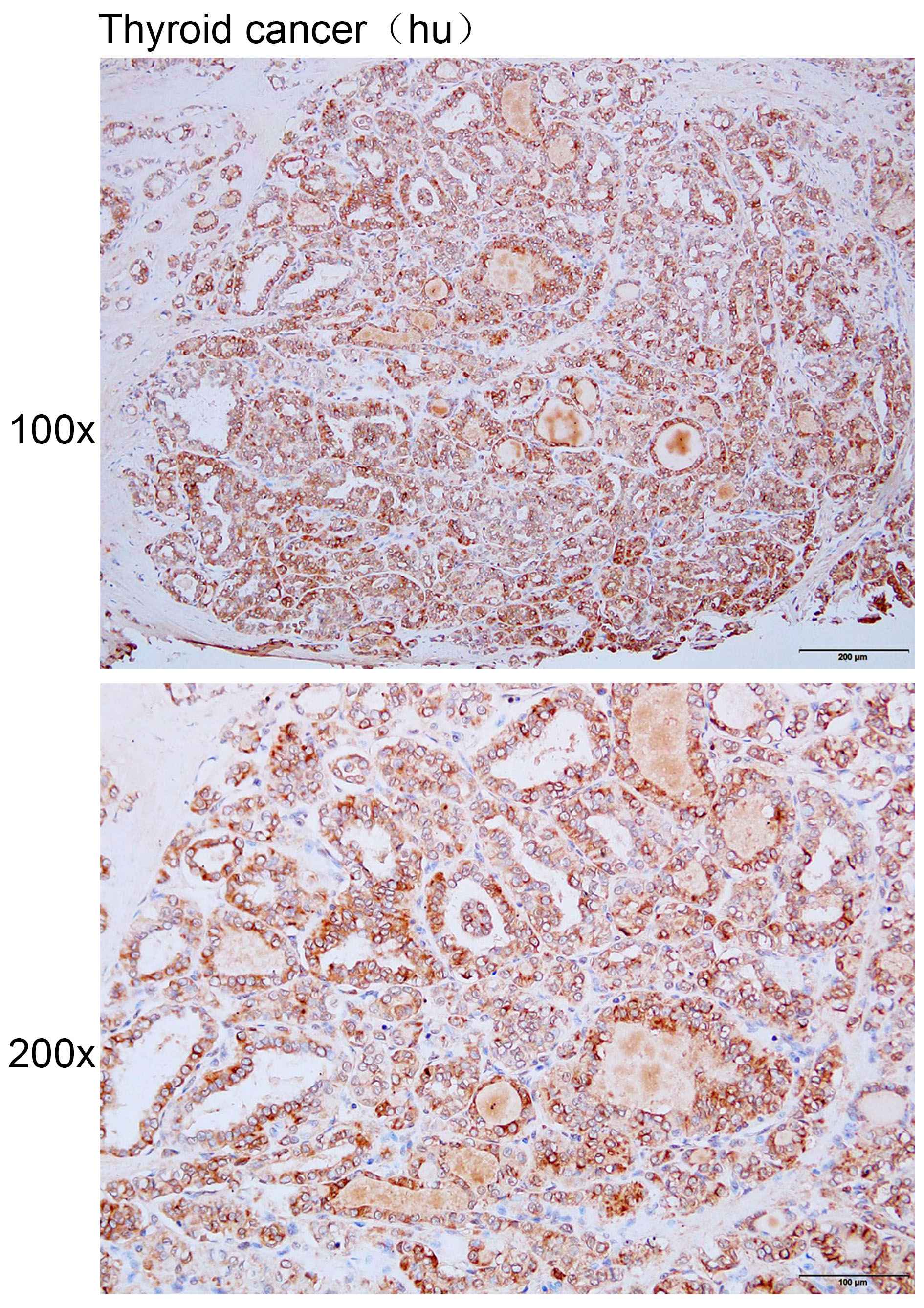 Immunohistochemistry of paraffin-embedded Human thyroid cancer with MYO1D antibody diluted at 1:200.