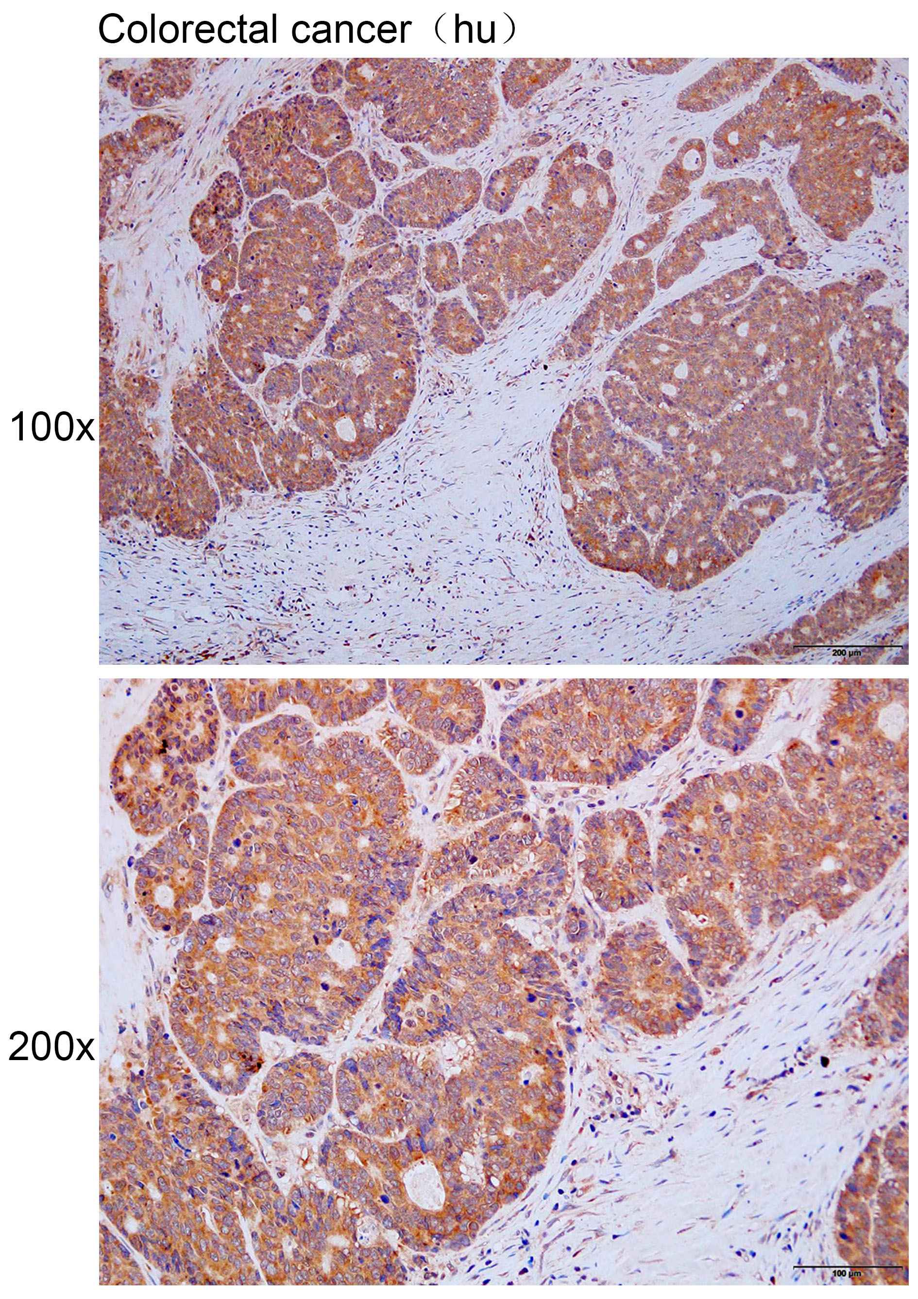 Immunohistochemistry of paraffin-embedded Human colorectal cancer with MYO1D antibody diluted at 1:200.