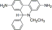 Dihydroethidium (also called hydroethidium) is the chemically reduced form of the commonly used DNA dye ethidium bromide. The probe is useful to detect oxidative activities in viable cells, including respiratory burst in phagocytes. Dihydroethidium itself has blue fluorescence (λEx/λEm: 355/420 nm) in cells, while the oxidized form ethidium has red fluorescence (λEx/λEm: 518/605 nm) upon DNA intercalation.
