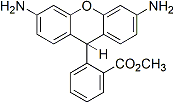 Dihydrorhodamine 123 is the reduced form of rhodamine 123 (70010), which is a commonly used fluorescent mitochondrial dye. Dihydrorhodamine 123 itself is non-fluorescent, but it readily enters cells and is oxidized by oxidative species or by cellular redox systems to the fluorescent rhodamine 123 that accumulates in mitochondrial membranes (1). Dihydrorhodamine 123 is useful for detecting reactive oxygen species including superoxide (in the presence of peroxidase or cytochrome c) (2,3) and peroxynitrite (4,5). Also see dihydrorhodamine 123 dihydrochloride (10056), a more stable and water soluble form of dihydrorhodamine 123.