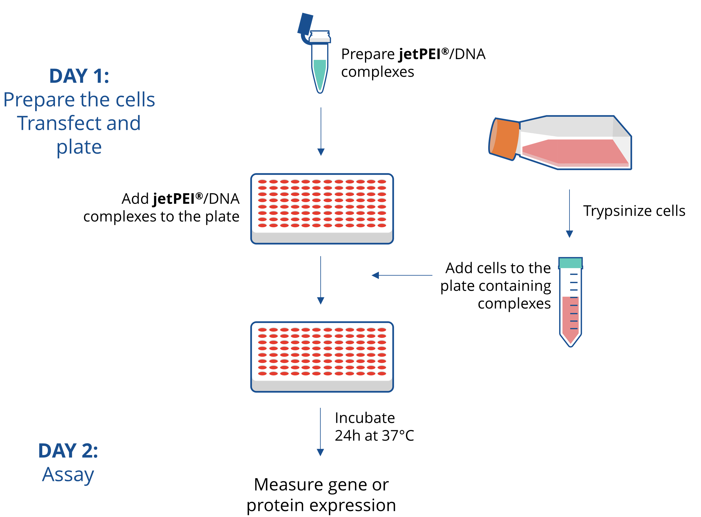 Fig. 1: jetPEI® reverse transfection protocol for HTS application.