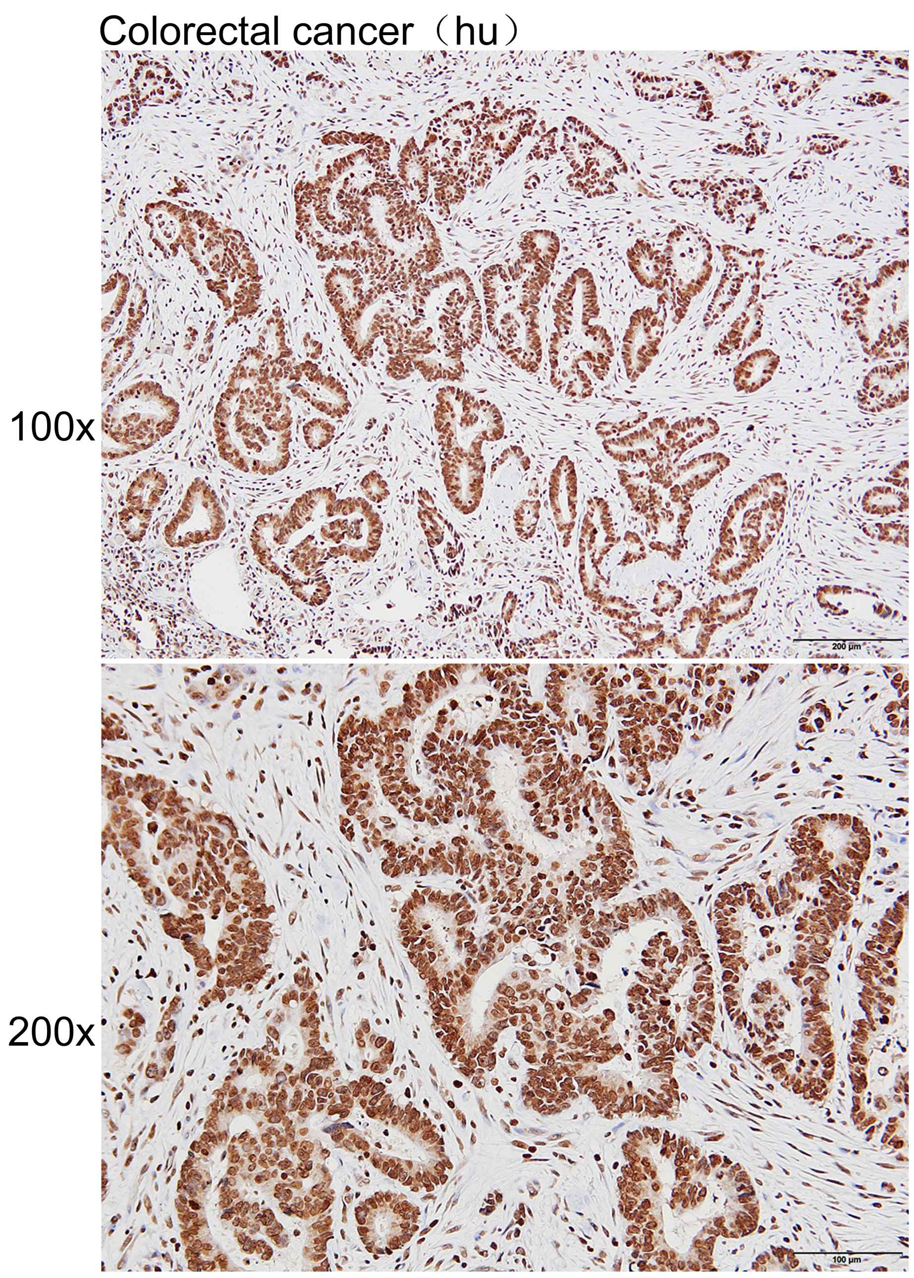 Immunohistochemistry of paraffin-embedded Human colorectal cancer with Histone H3 antibody diluted at 1:200