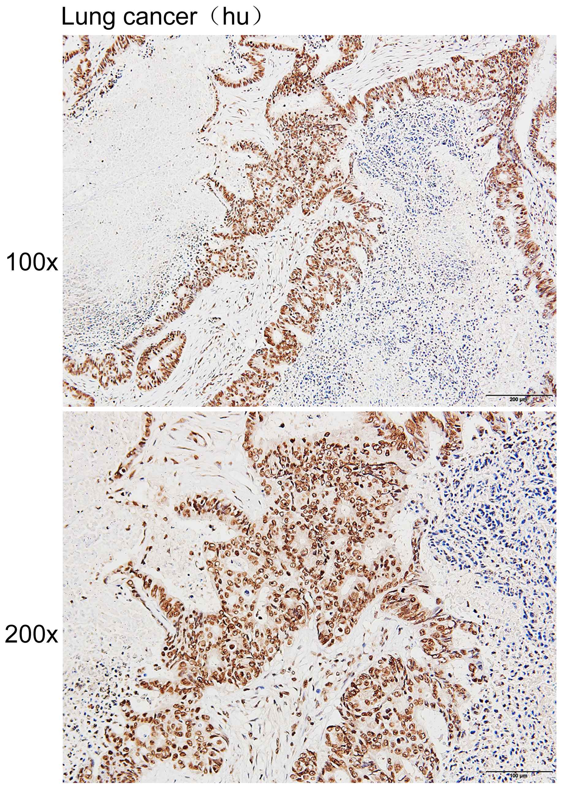 Immunohistochemistry of paraffin-embedded Human lung cancer with Histone H3 antibody diluted at 1:200