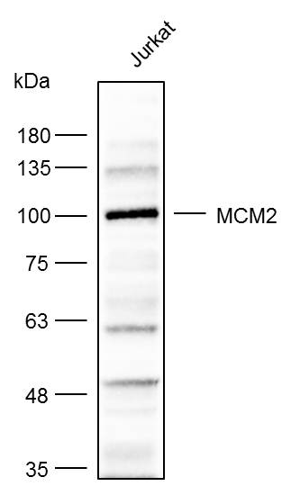 Western blot analysis with MCM2 antibody diluted at 1:1000