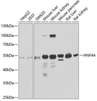 Western blot analysis with Anti-HNF4A Rabbit Polyclonal Antibody diluted at 1:1,000