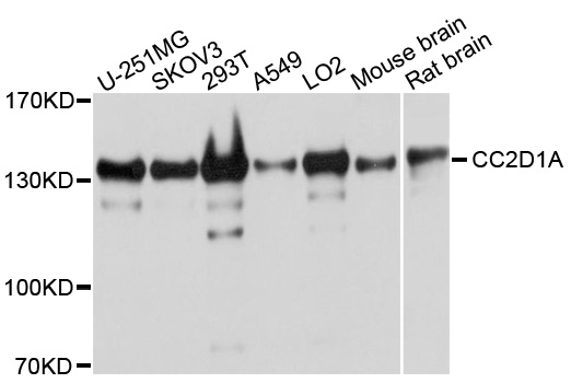 Western blot analysis with CC2D1A antibody diluted at 1:1000
