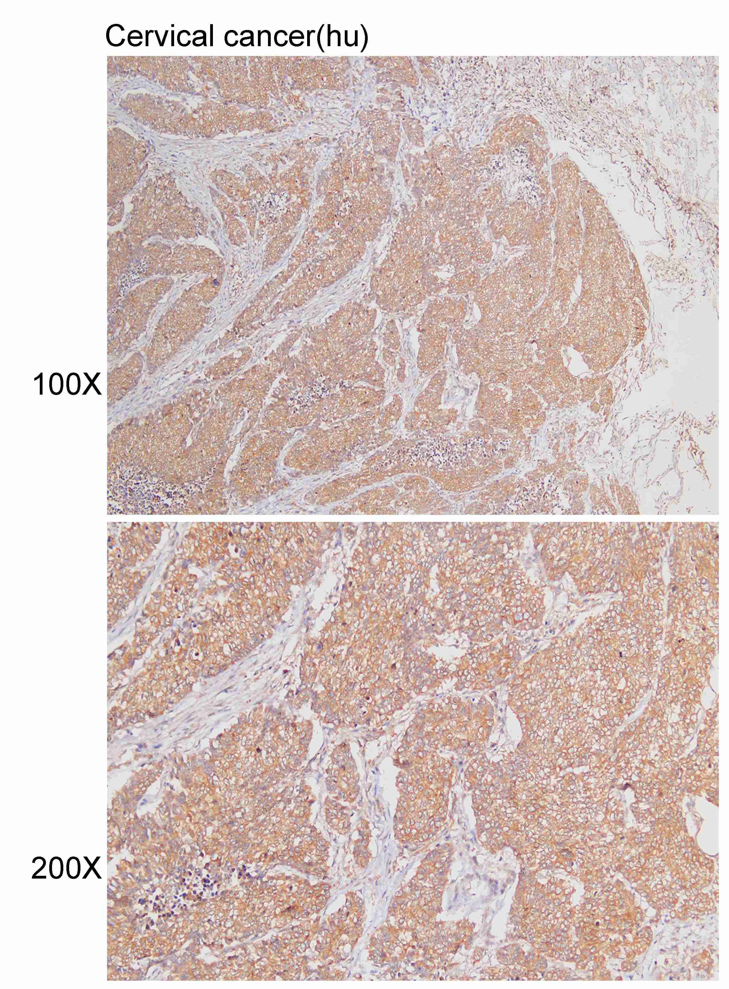 Immunohistochemistry of paraffin-embedded Human cervical cancer with GARS antibody diluted at 1:100