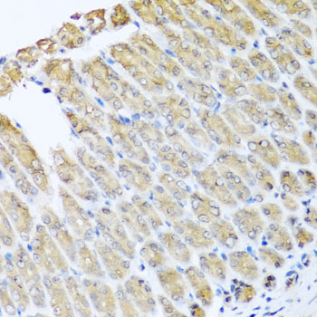 Immunohistochemistry of paraffin-embedded mouse stomach using GFER antibody at dilution of 1:100 (x40 lens).