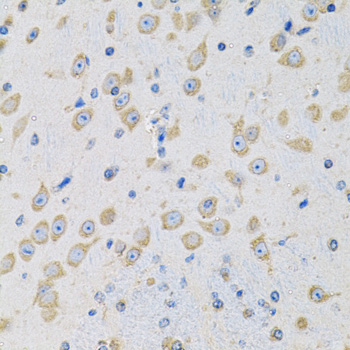 Immunohistochemistry of paraffin-embedded mouse brain tissue using MSRA antibody at dilution of 1:100 (x40 lens).