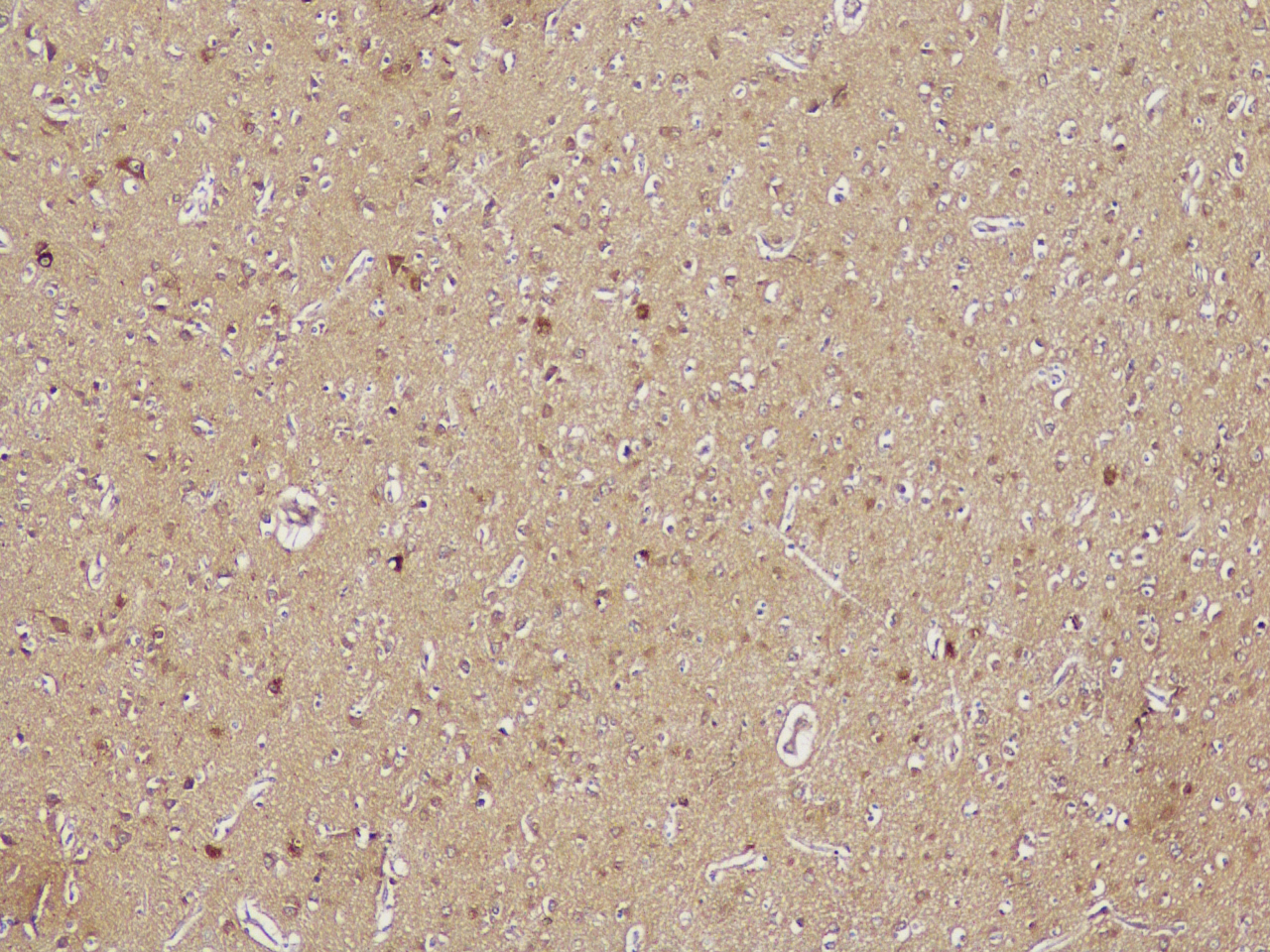 Immunohistochemistry of paraffin-embedded Brain(hu) using TPP2 antibody at dilution of 1:100 (x100 lens,x200 lens).
