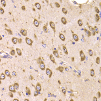Immunohistochemistry of paraffin-embedded Mouse brain using EEF1B2 antibody at dilution of 1:100 (x40 lens).