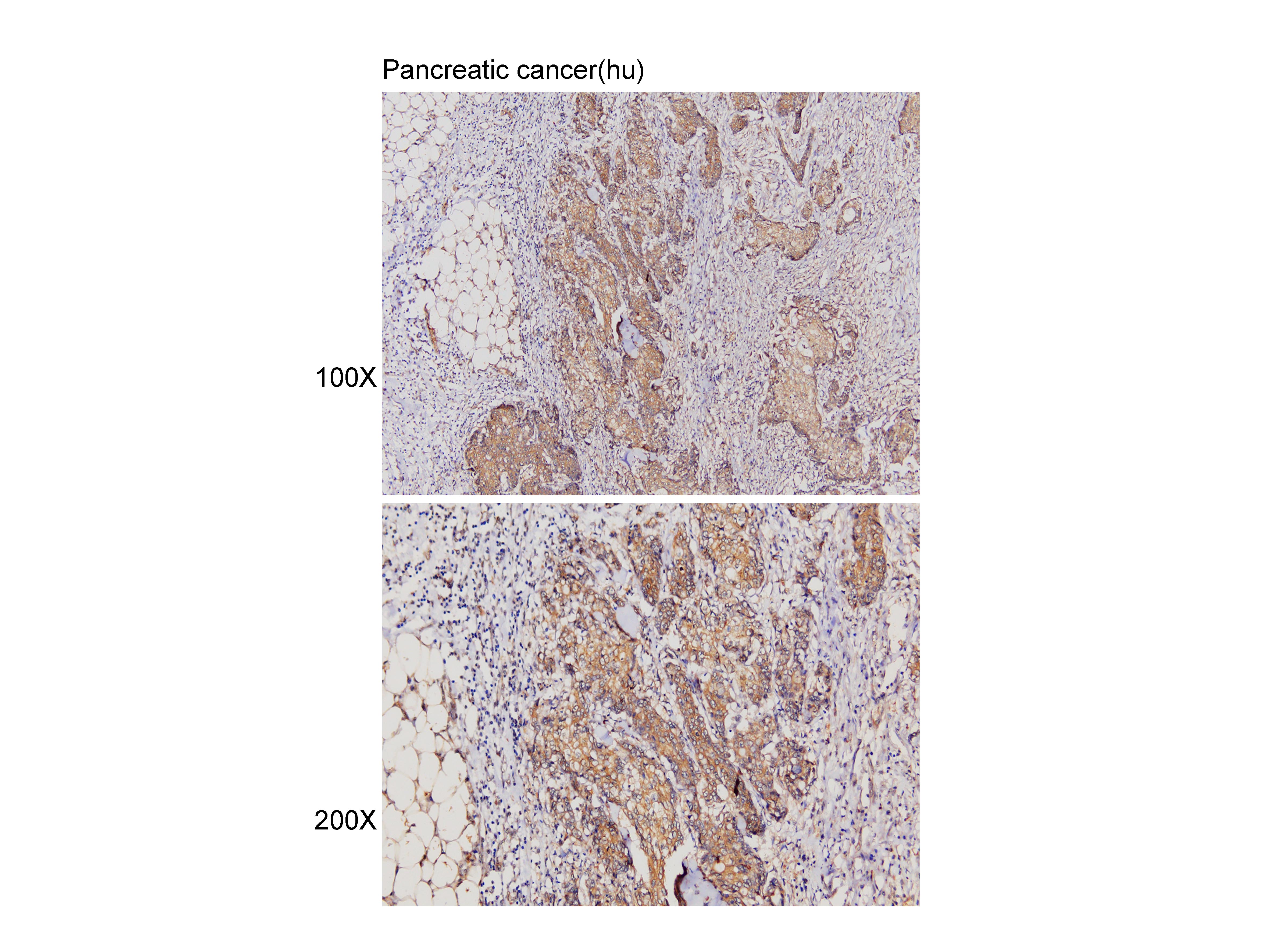 Immunohistochemistry of paraffin-embedded Pancreatic cancer(hu) using MYL3 antibody at dilution of 1:100 (x100 lens,x200 lens).