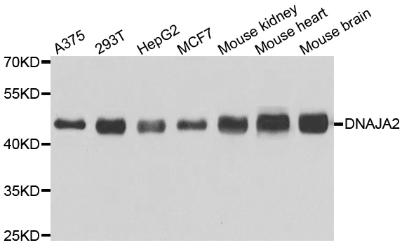Western blot analysis with DNAJA2 antibody diluted at 1:1000