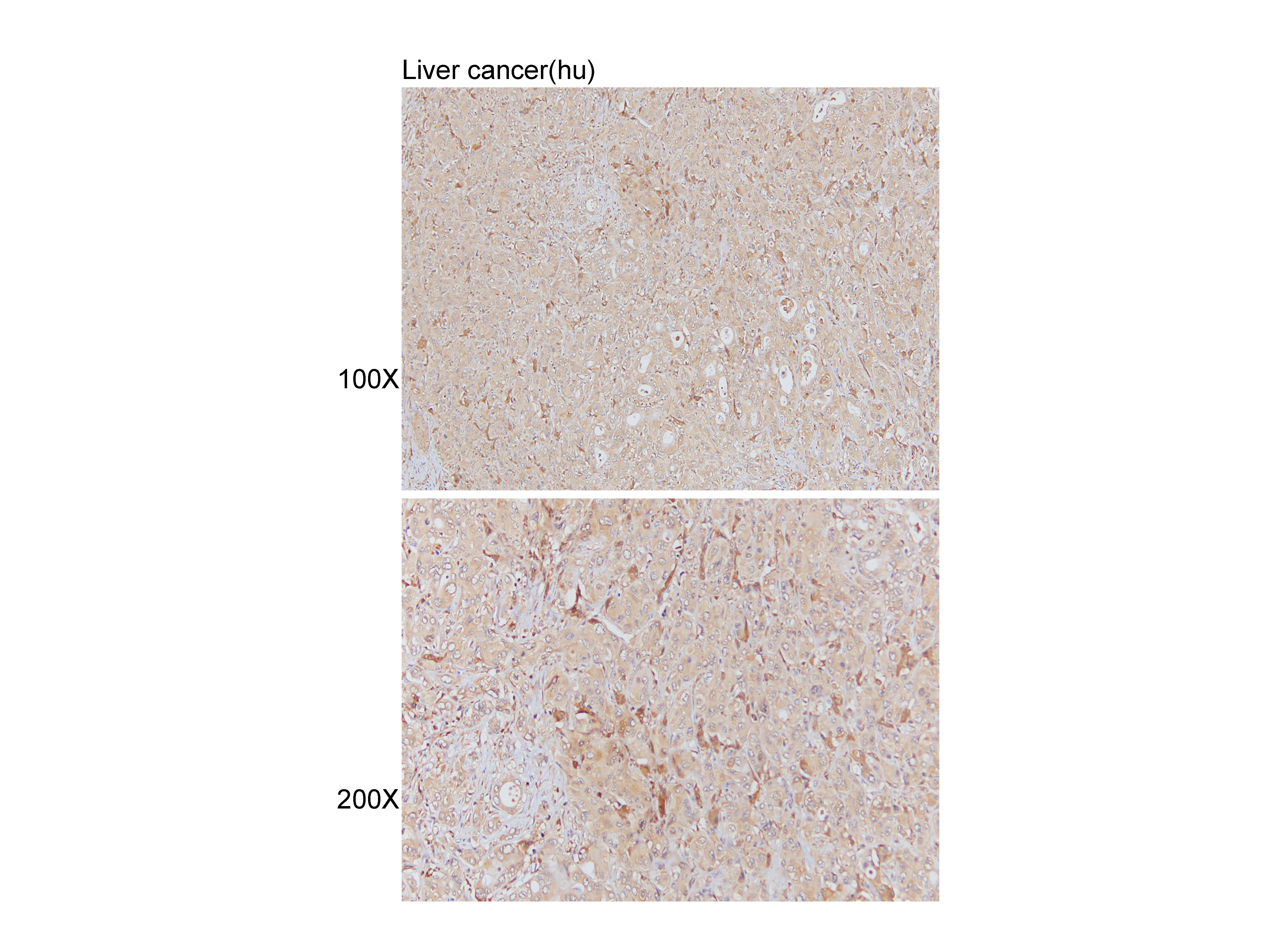 Immunohistochemistry of paraffin-embedded liver cancer(hu) using ING5 antibody at dilution of 1:100 (x100 lens,x200 lens).
